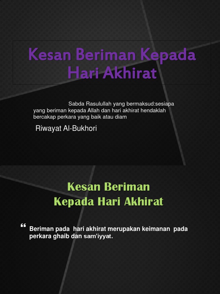 Kesan beriman kepada Hari Akhirat Ciri - ciri orang yang beriman kepada hari akhirat Bertaqwa kepada Allah Pakaian Akhlak Ibadah - mesra dan bersopan santun dengan. BERIMAN KEPADA HARI AKHIRAT Pronađi podudarnost. BERIMAN KEPADA HARI AKHIRAT pada 2020-05-11.